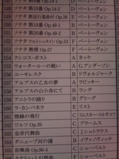 ワルトシュタインが難易度F(上級上)で、ラ・カンパネラがE(上級)ってなによ?明らかにカンパネラのほうがムズいとか考えてるのは世界で俺がただ一人ってこと?ベートーベンのソナタのほうがカンパネラよりムズイなんてことあり得るのか?まじかおい!!