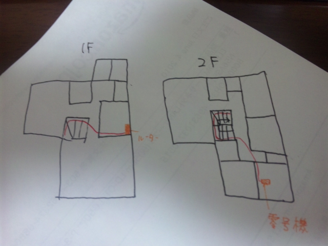 2階はまぁまぁそれっぽく書いてるけど、1階は全然違う。まぁルーターと零号機の位置が分かればよし。