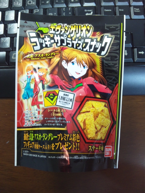 「エヴァンゲリオン ラッキーサプライズスナック」。お値段は150円ぐらい・・・だったかなw 買ってからしばらく放置してたから忘れましたwww