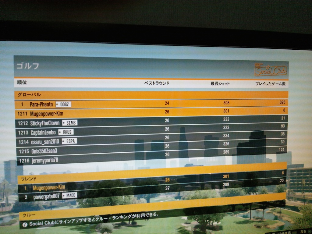 俺は1211位で9ホール26打。内容としては確かイーグル1回とあとすべてバーディーな感じやった気がする。6回目でコレはいいほうでしょうきっと。