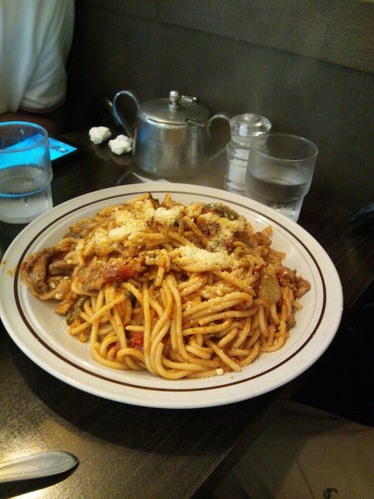 みゃー先輩が頼んだ。最初スパゲッティと生クリームだけで食べた時、あと一歩な感じがしたけれど、小倉が混ざった瞬間あら不思議うめぇ。