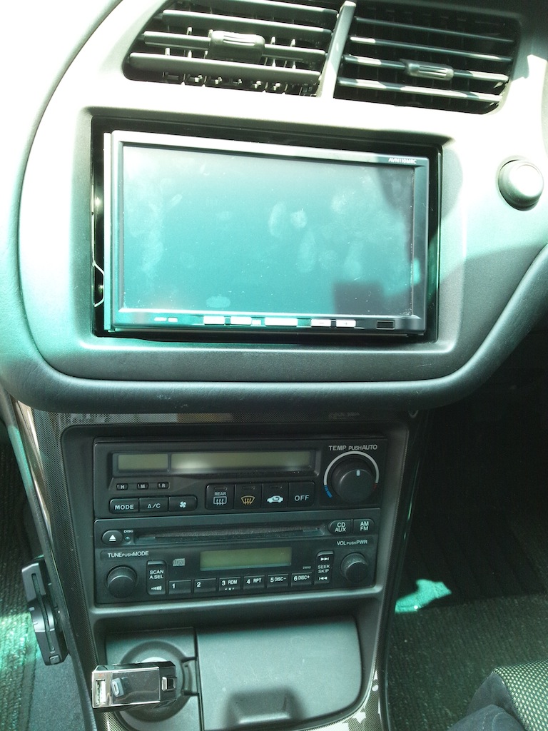 前からカーナビは付けたいなぁと思ってて、アップガレージって店で中古のカーナビが安くで売ってて、比較的新しいし、iPod聞けるようにしたかったし、ちょうどいいと思って24000円ぐらいで買ってきた。
