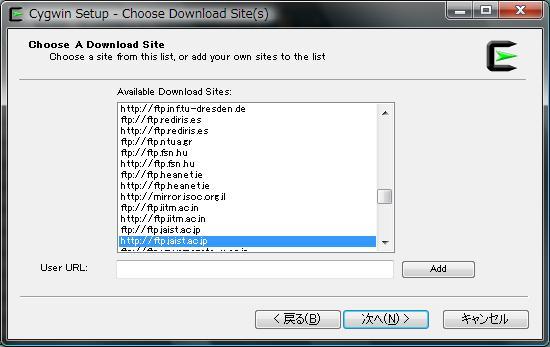 cygwinのホームページから実行ファイルダウンロード