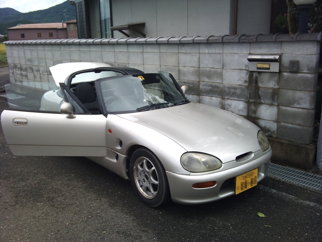 あと、屋根。屋根の付け方の問題だと思うが、洗車時にちょっと雨漏りしてた。窓をつたって行く感じ。まさにカプチーノ専門店の人の言うとおりの漏れ方。この辺もひどくなってきたら対処しよう。